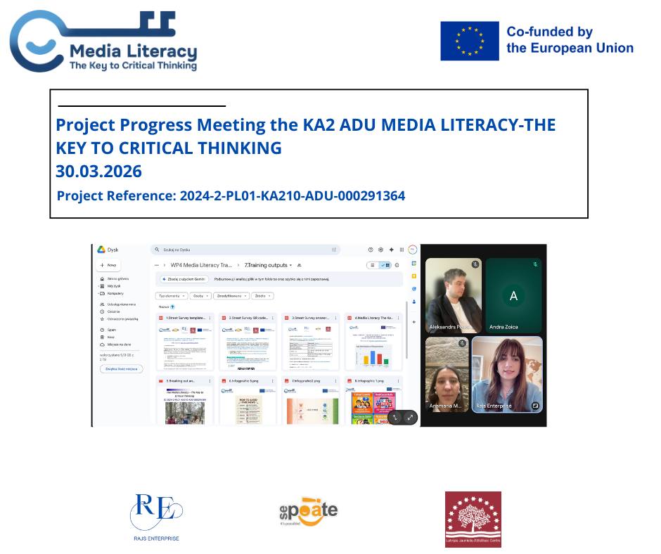 Głównym punktem spotkania było omówienie wyników niedawnego szkolenia Work Package 4 (WP4), które odbyło się w Polsce, w Częstochowie, w dniach 16.03 – 21.03.2026. Przeanalizowaliśmy wyniki naszych „badań ulicznych” (Street Survey) – to niesamowite widzieć, jak różne pokolenia postrzegają potrzebę edukacji medialnej! ![]()